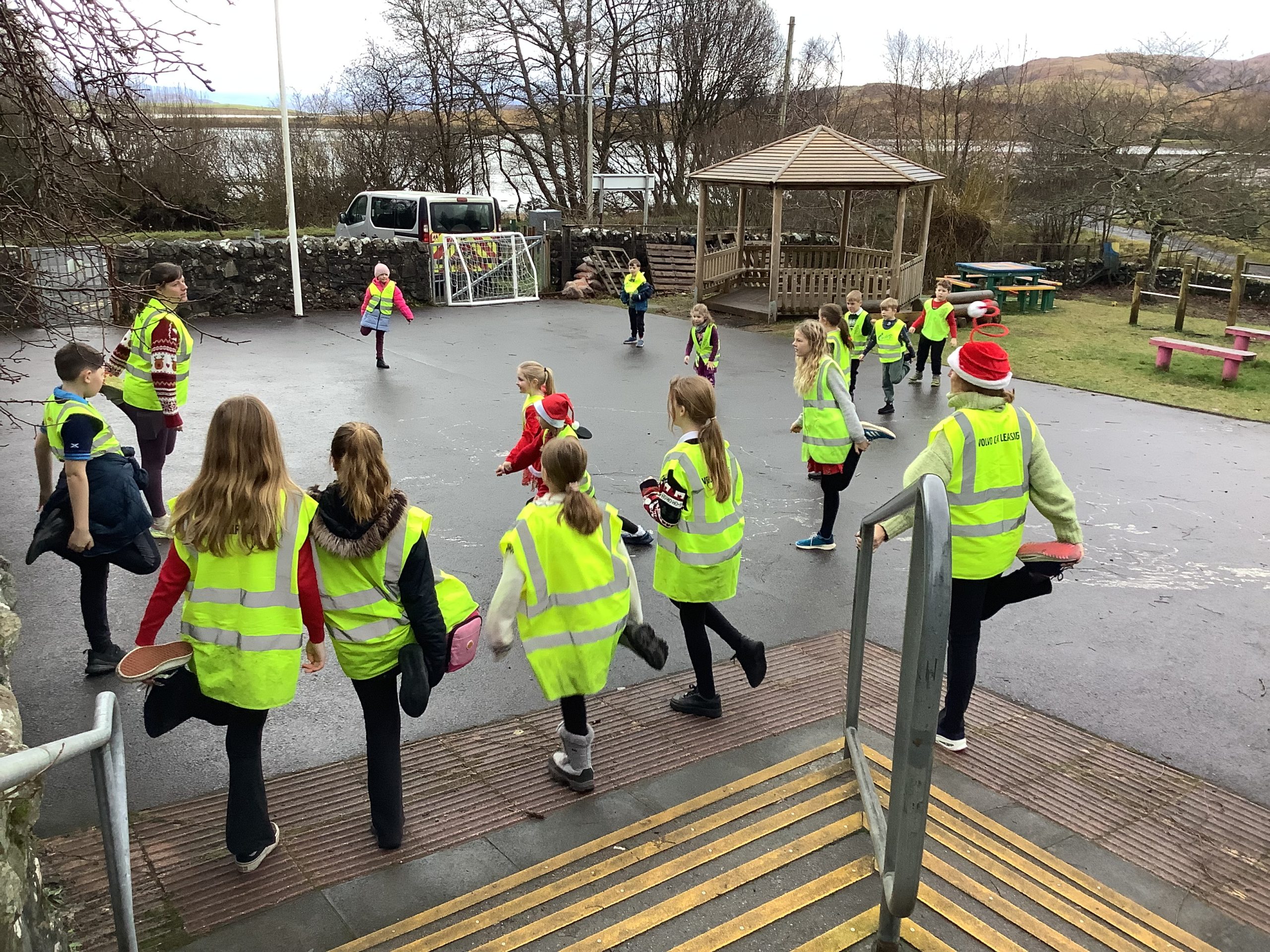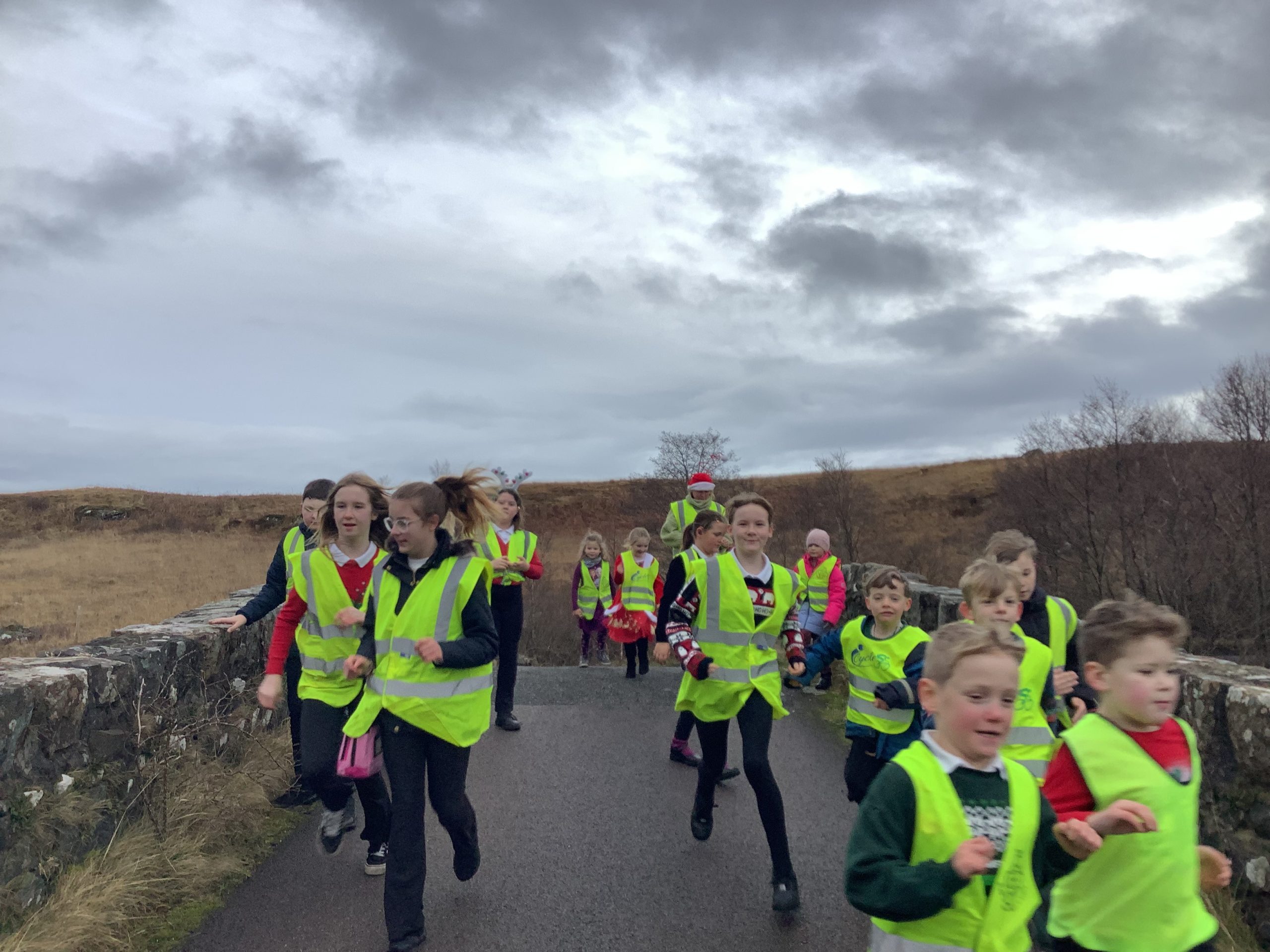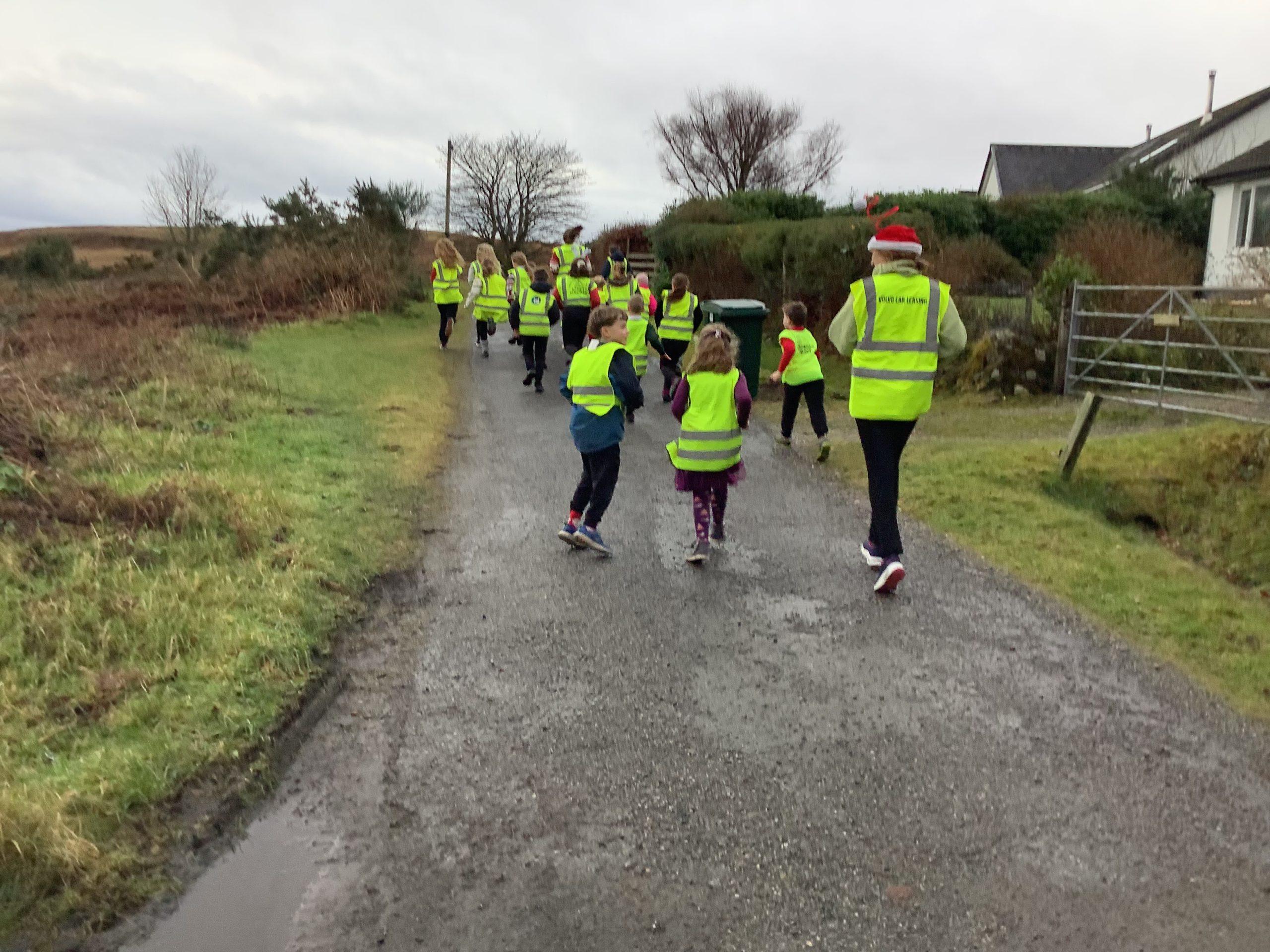 Today we started the day running, jogging and walking the Daily Mile Santa Dash, after a warm up in the playground.