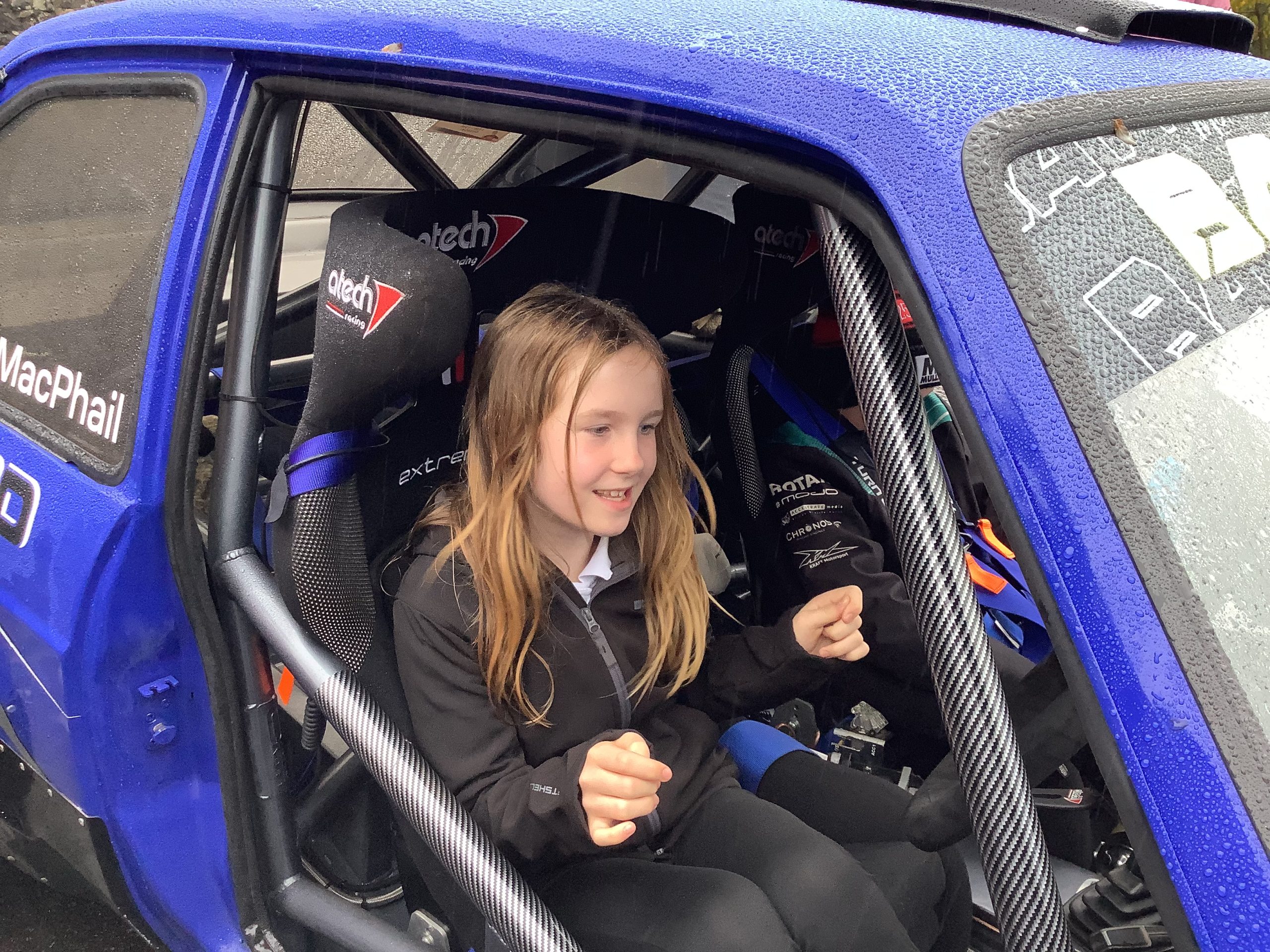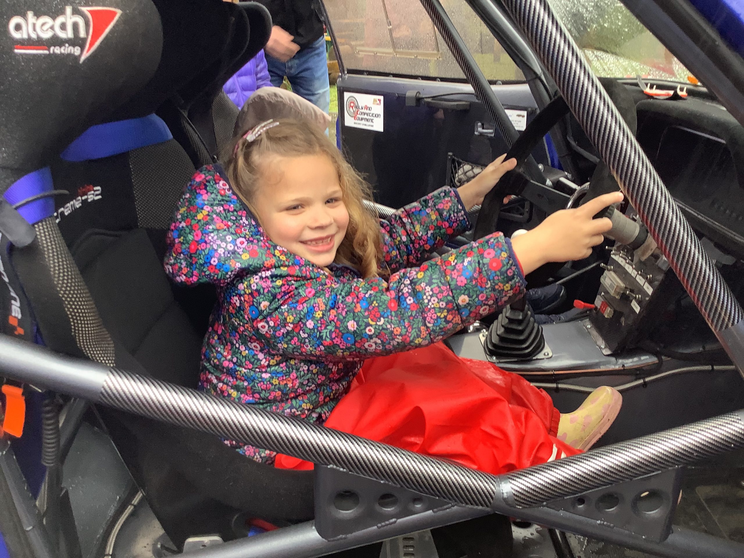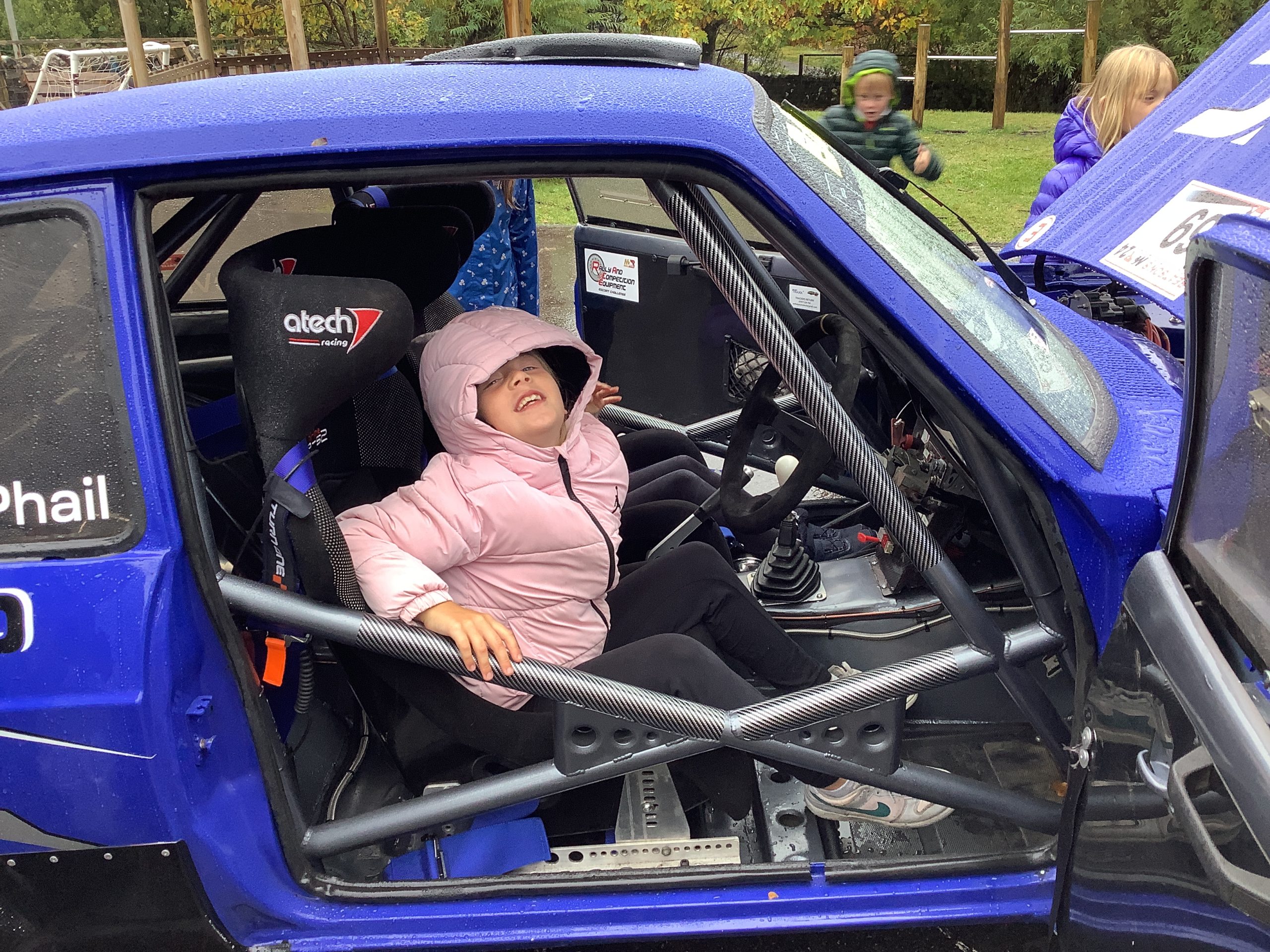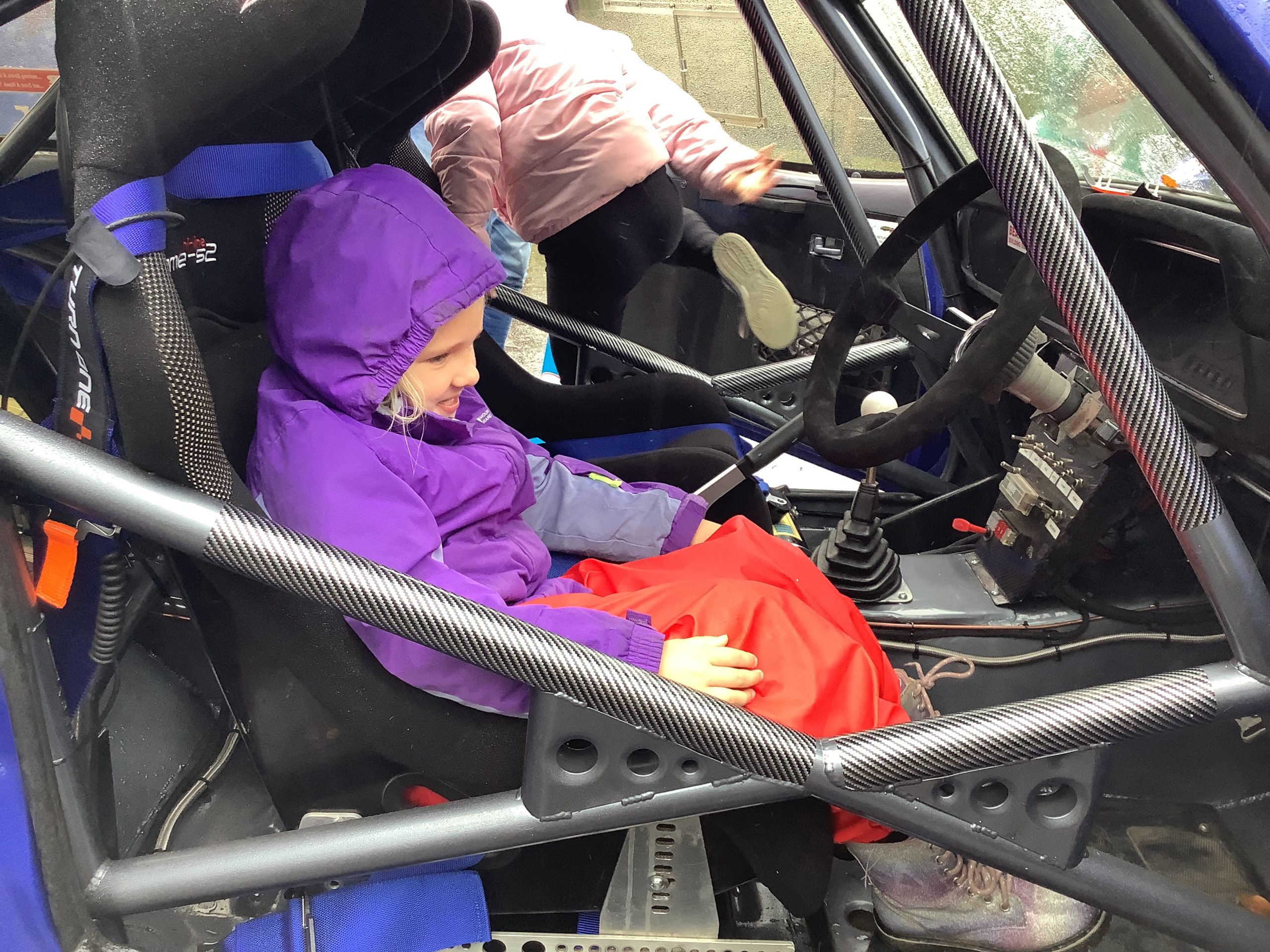 The rally car was blue, I liked seeing it. When I grow up, I want to be in a rally car, Finlay will be driving it and I will be sitting in the seat. – Emily P2