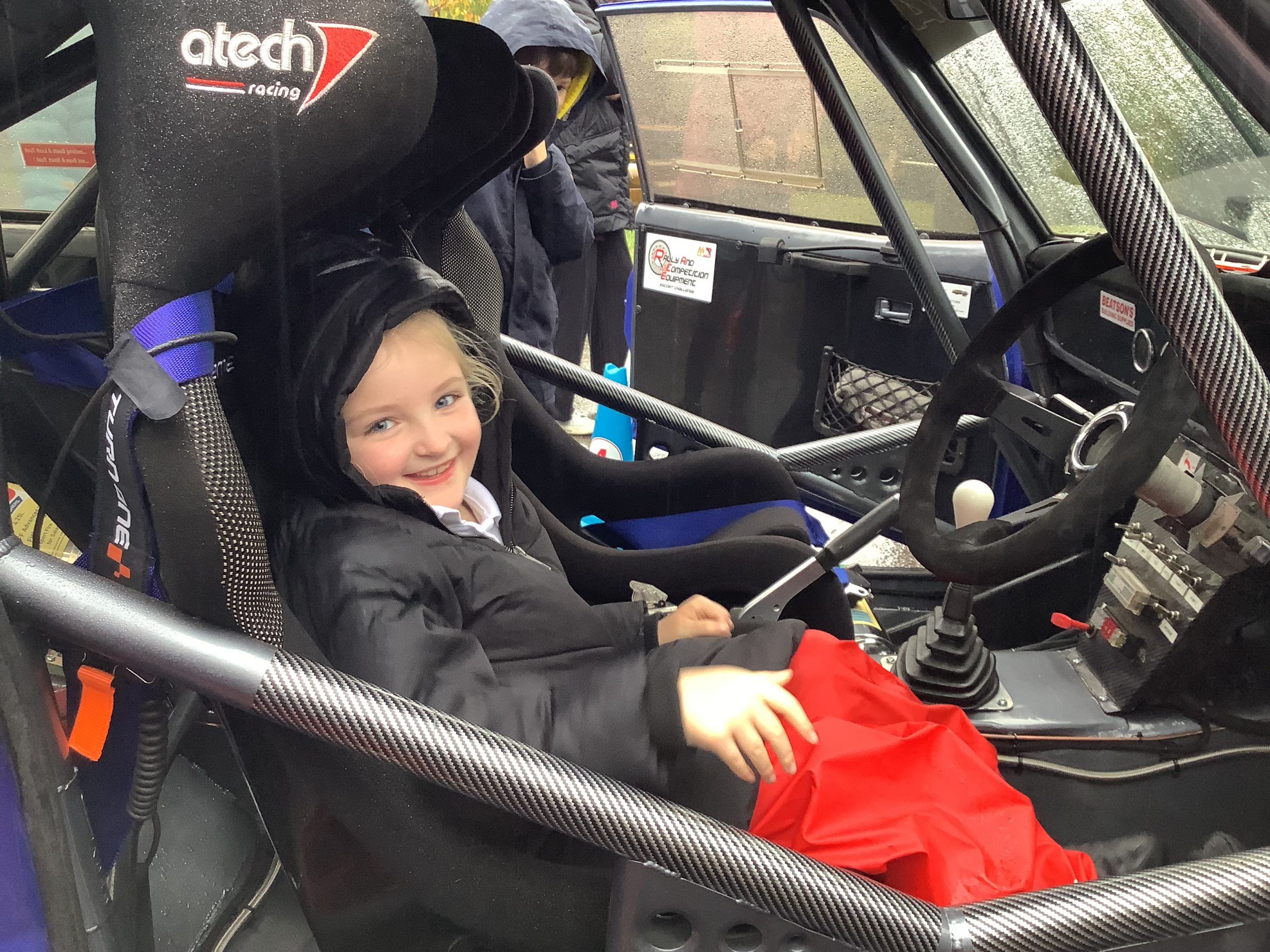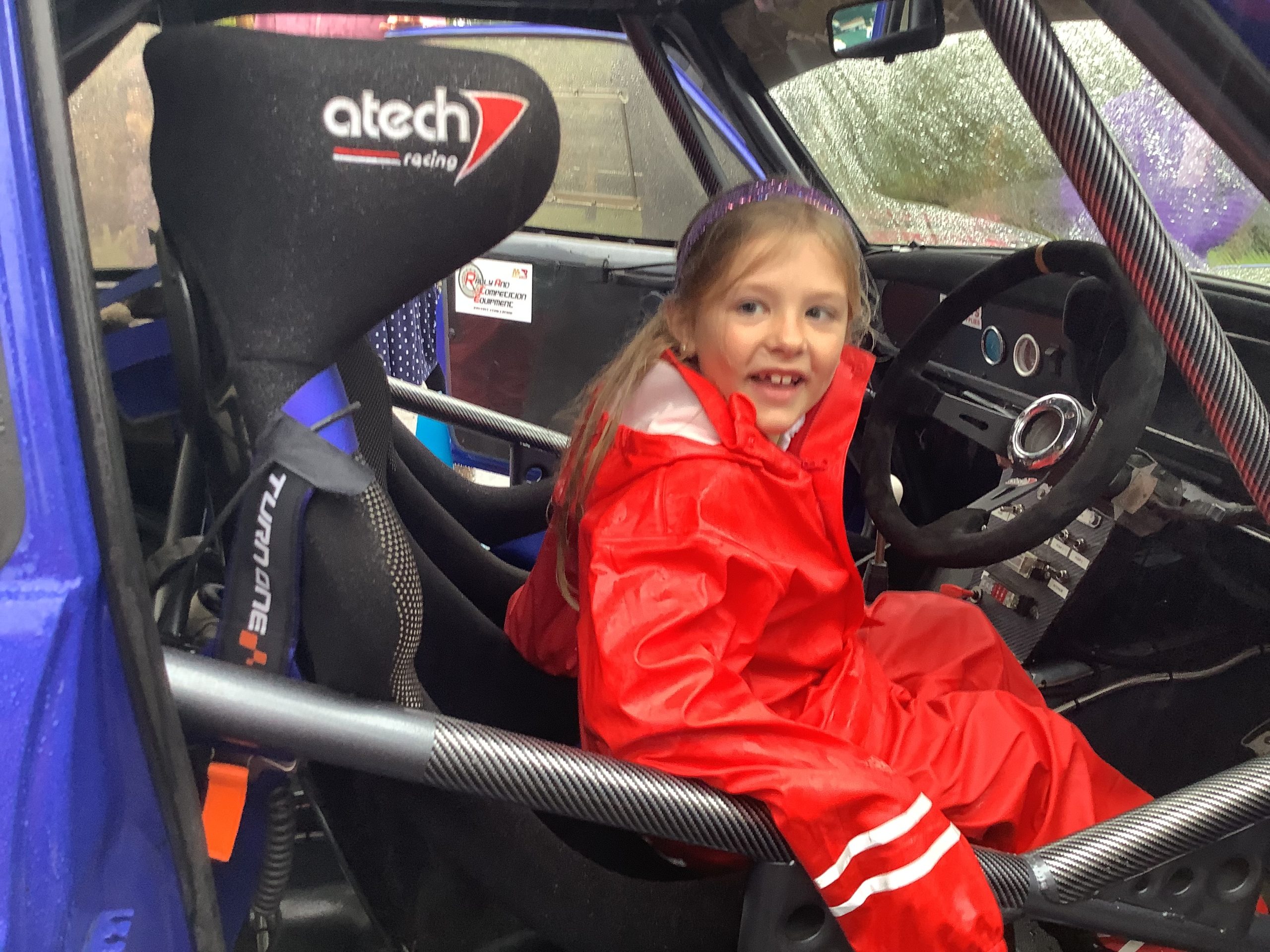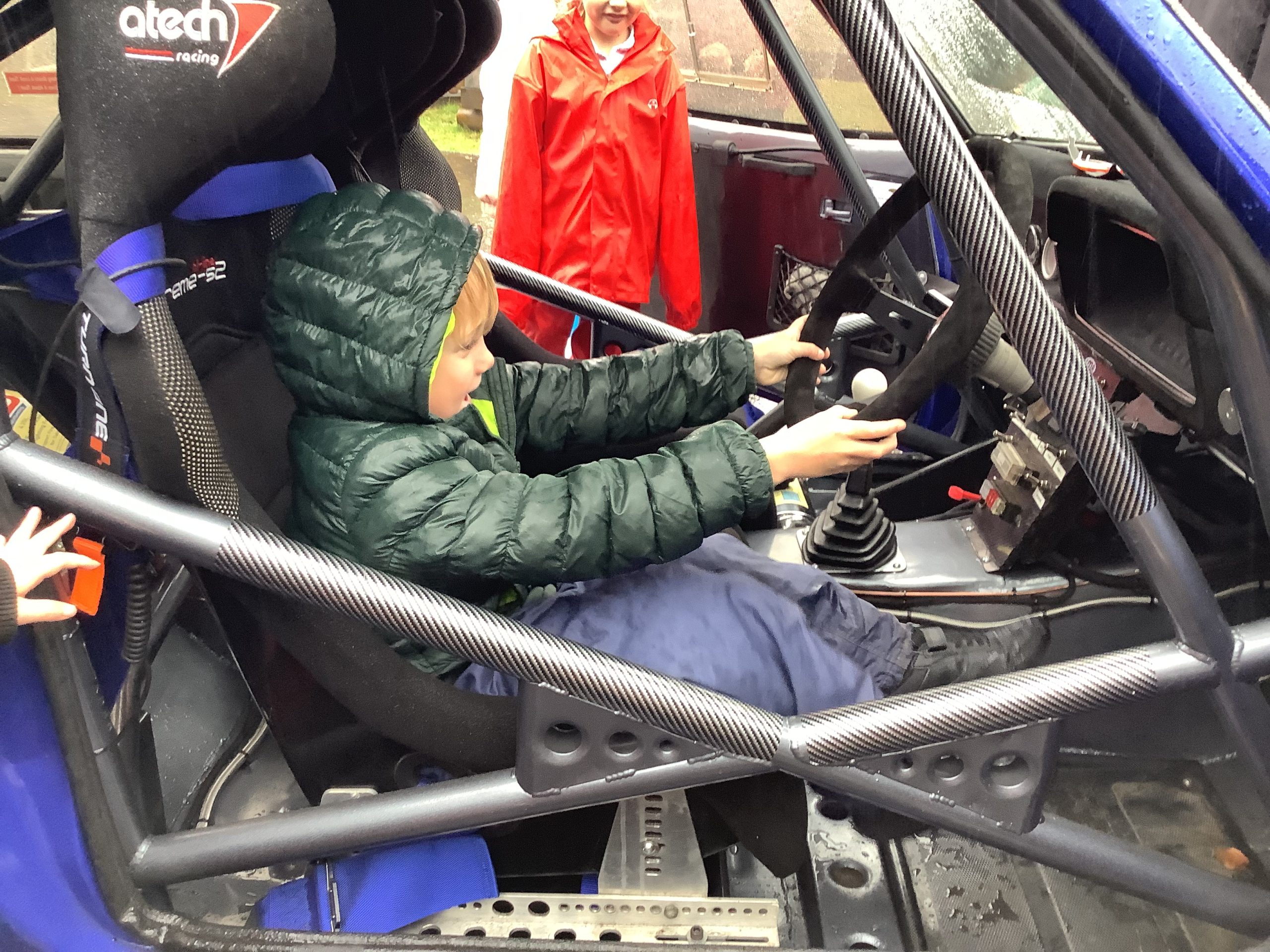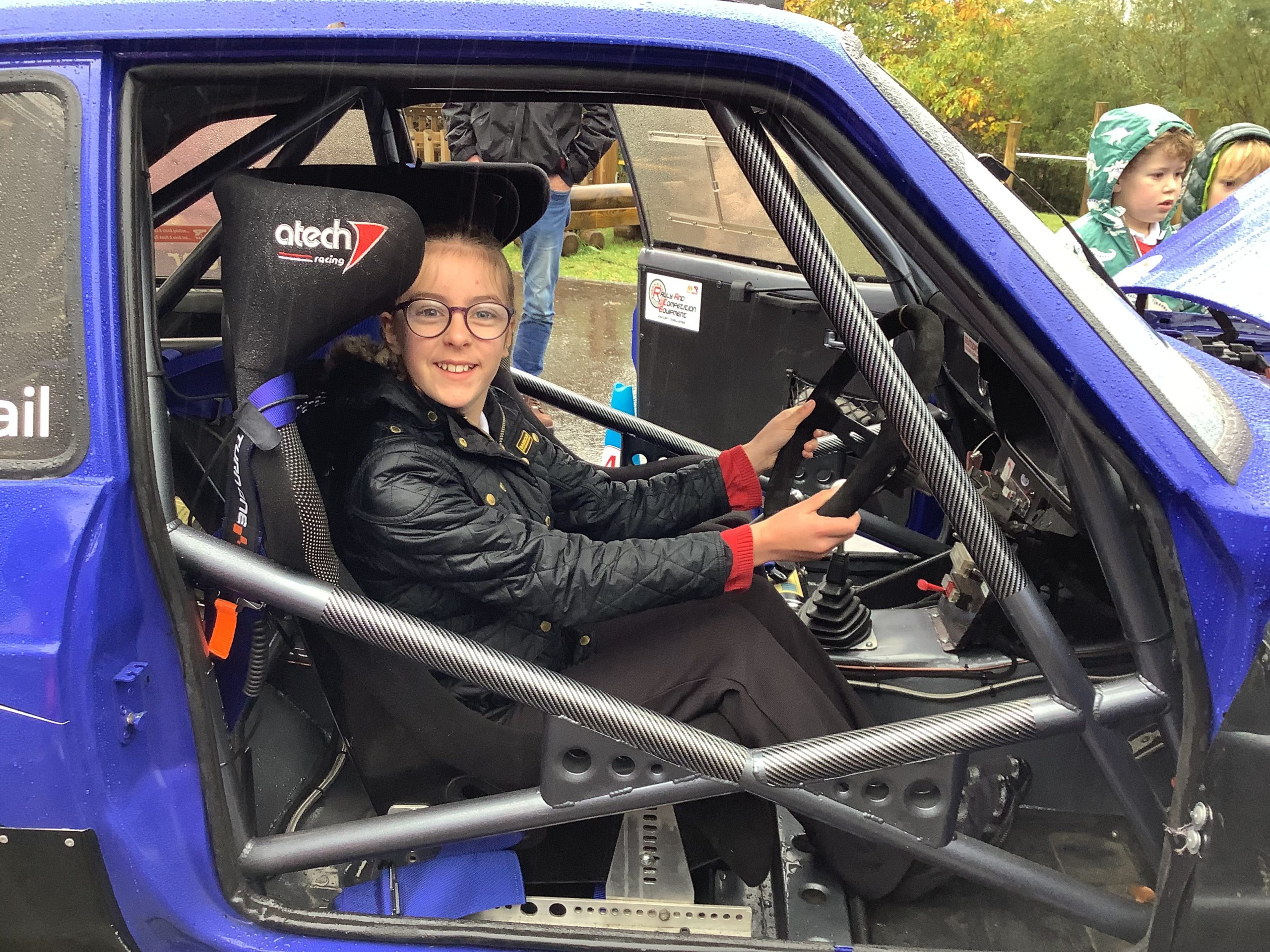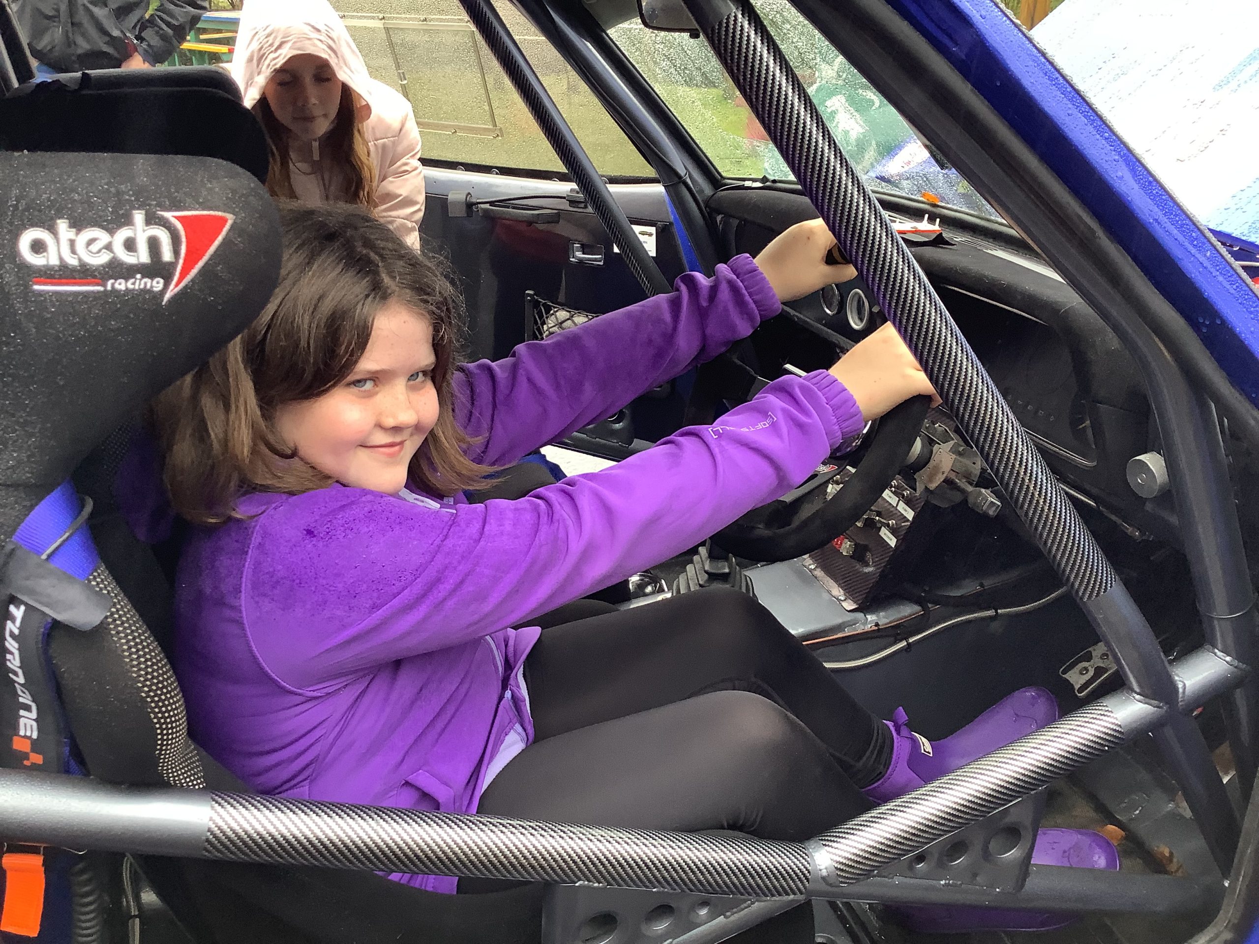 The rally car was blue, I liked seeing it. When I grow up, I want to be in a rally car, Finlay will be driving it and I will be sitting in the seat. – Emily P2