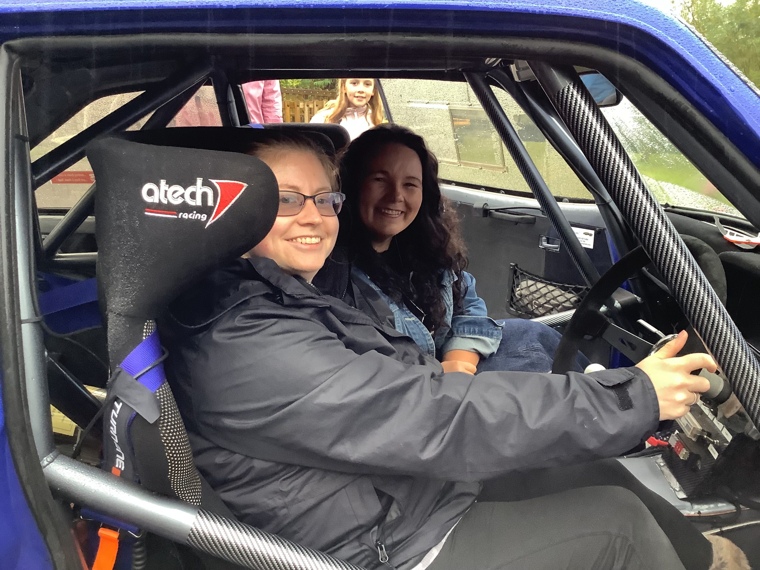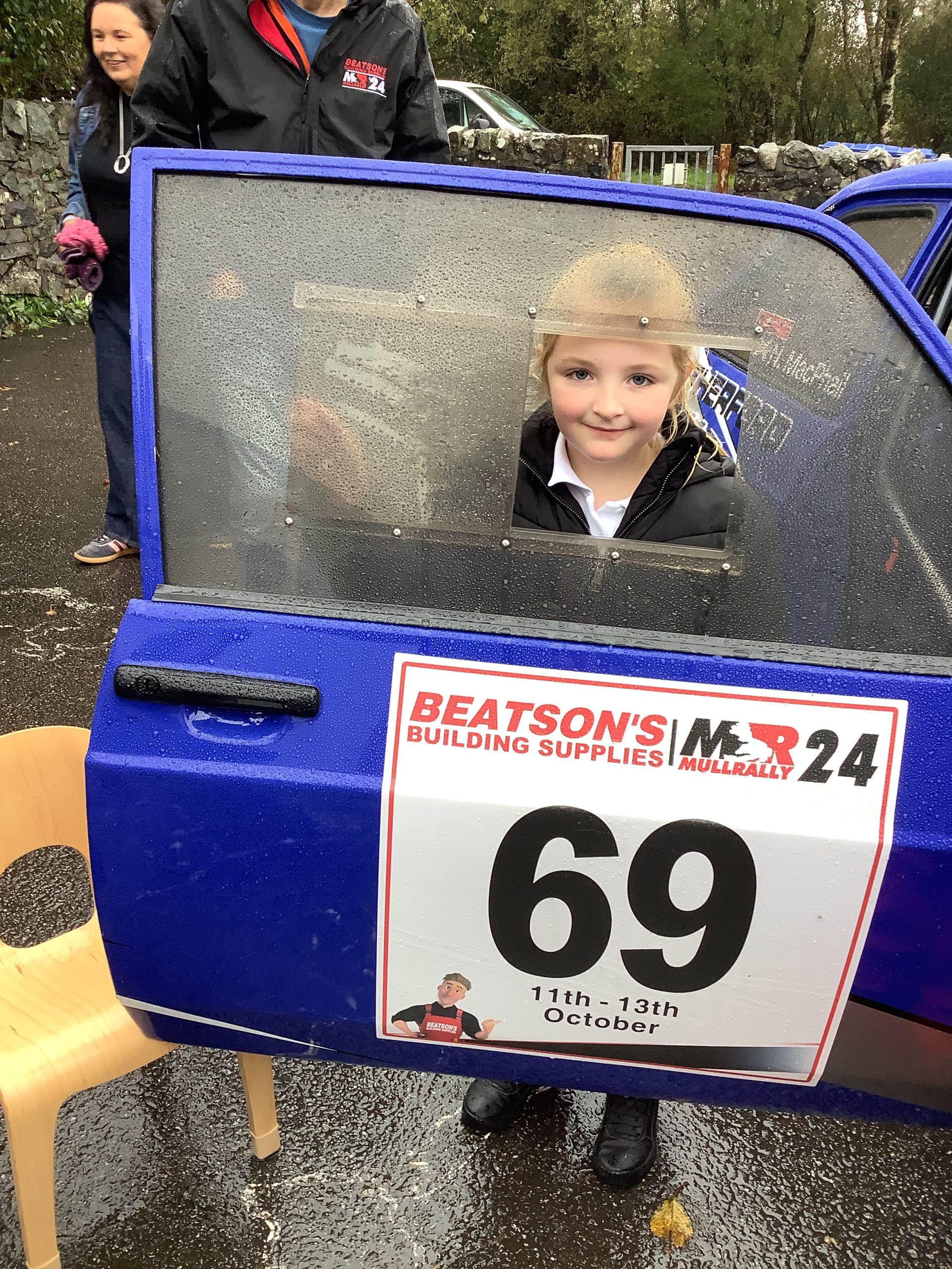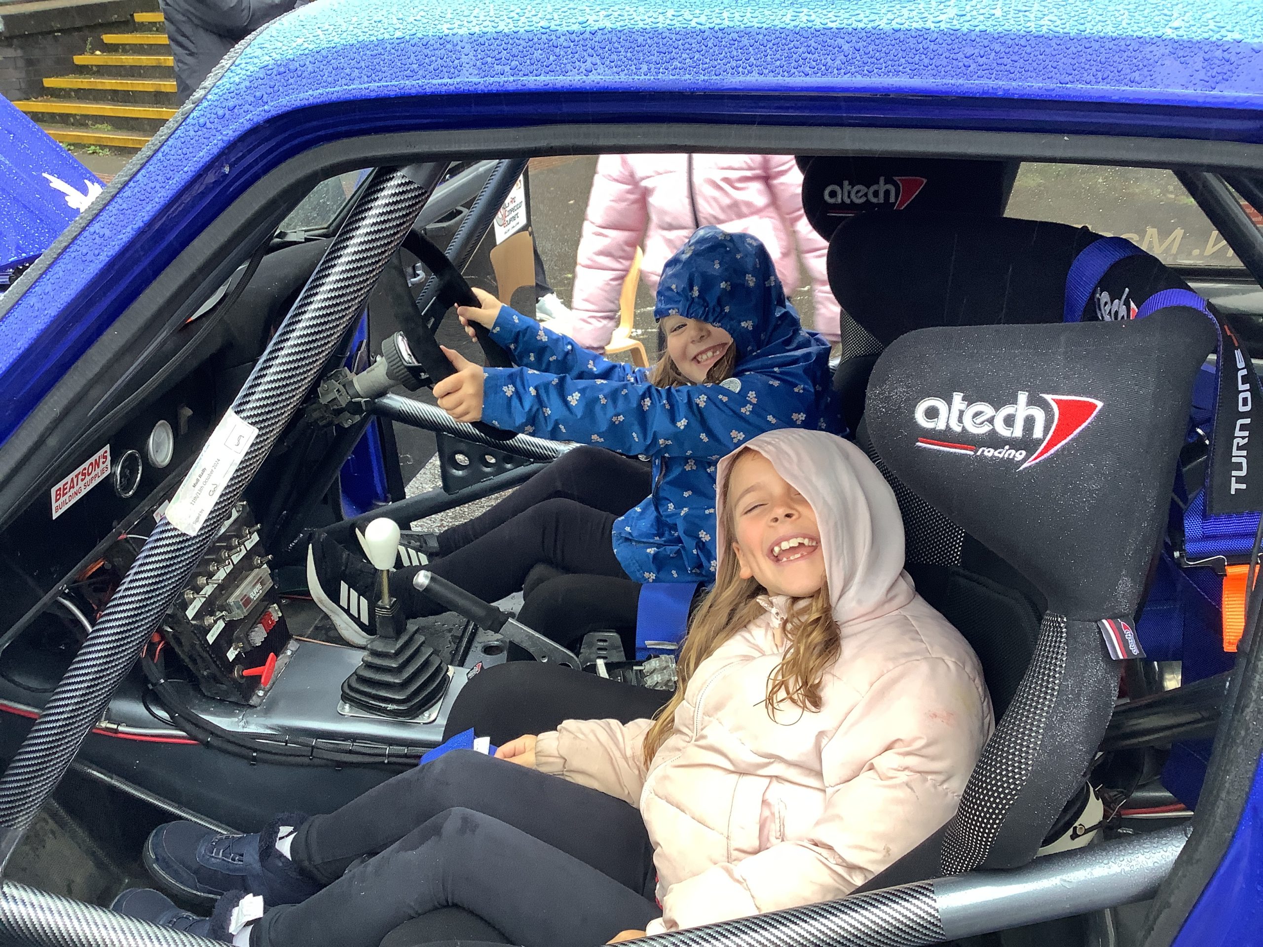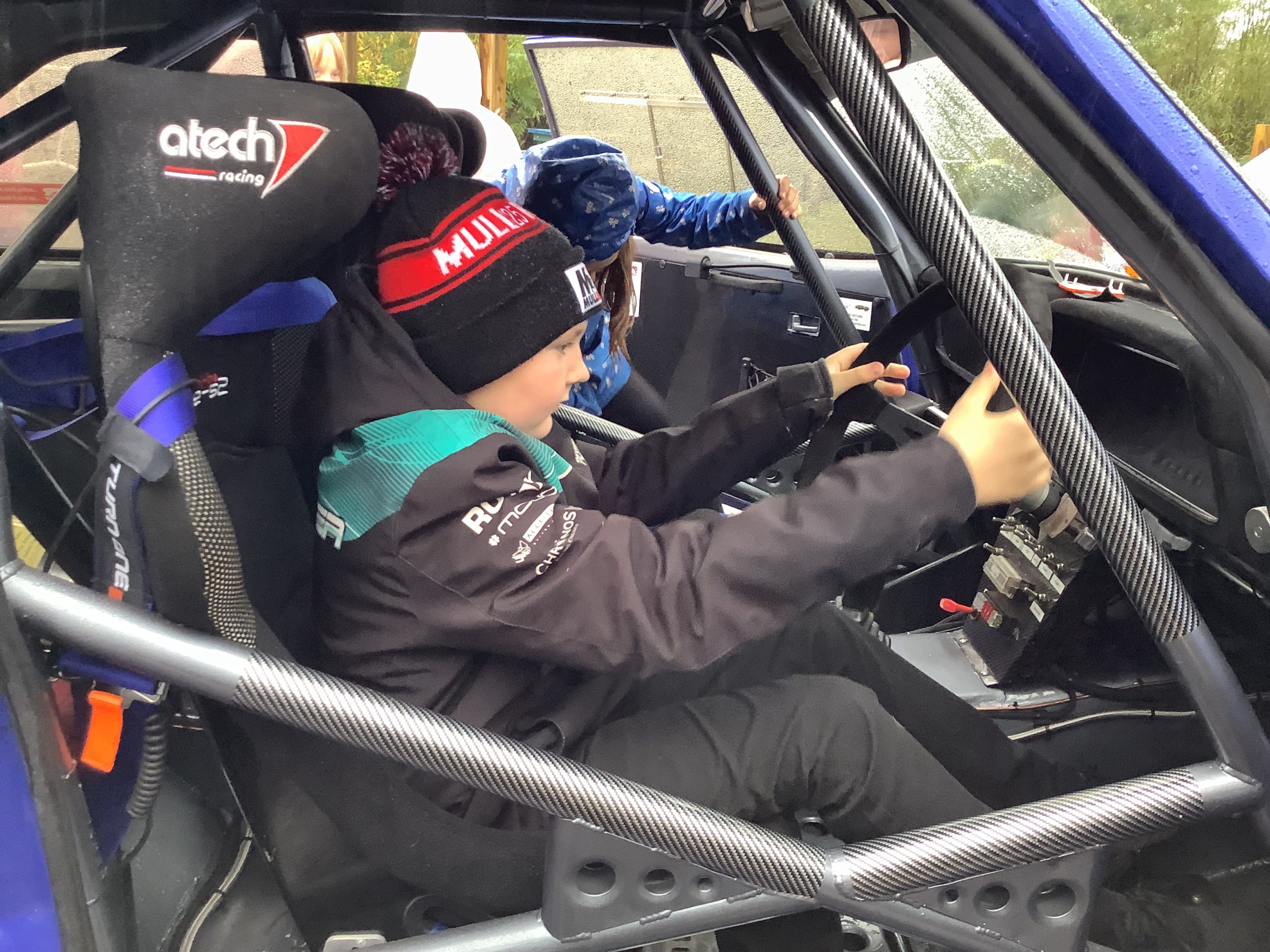 The rally car was blue, I liked seeing it. When I grow up, I want to be in a rally car, Finlay will be driving it and I will be sitting in the seat. – Emily P2