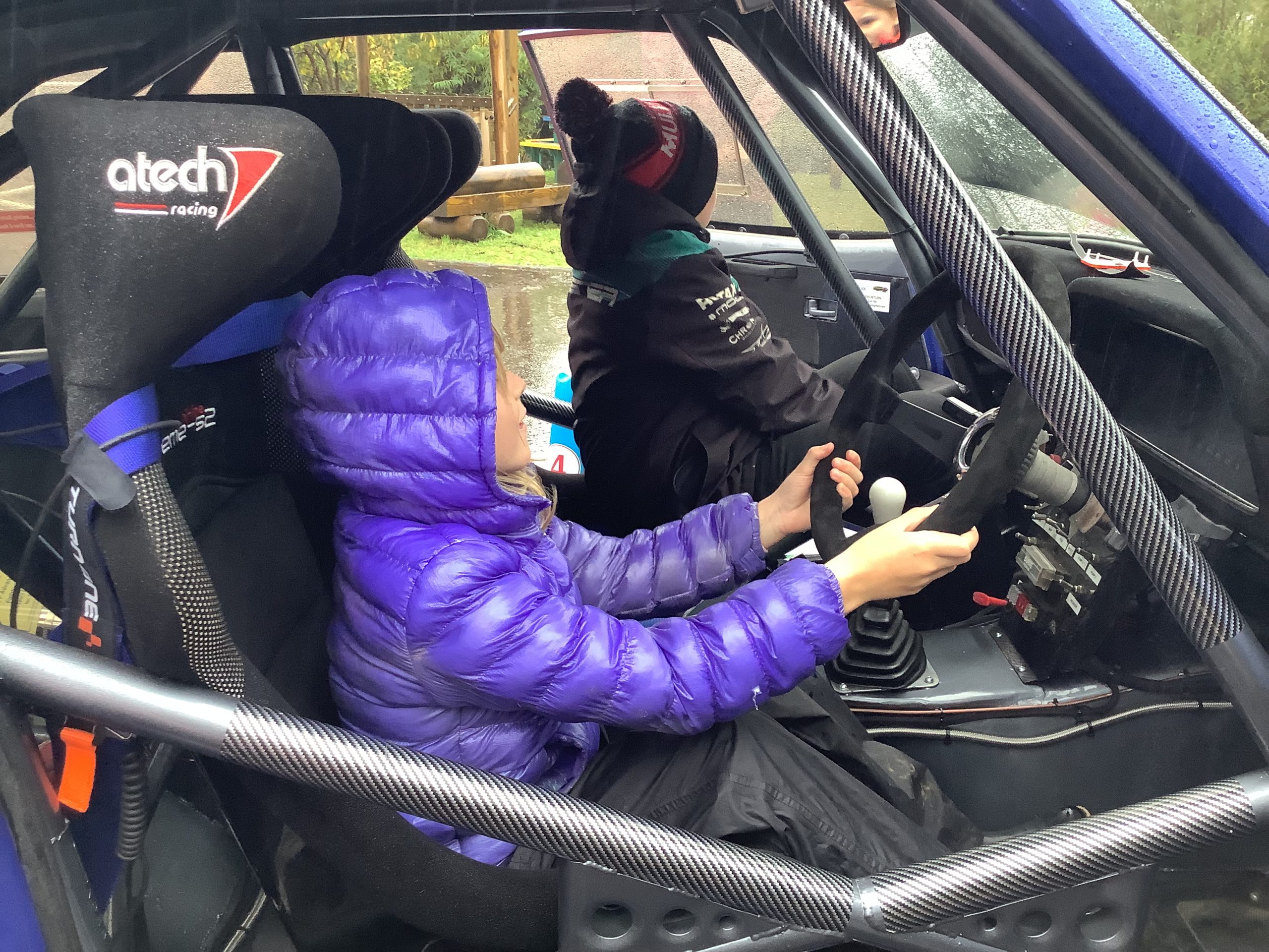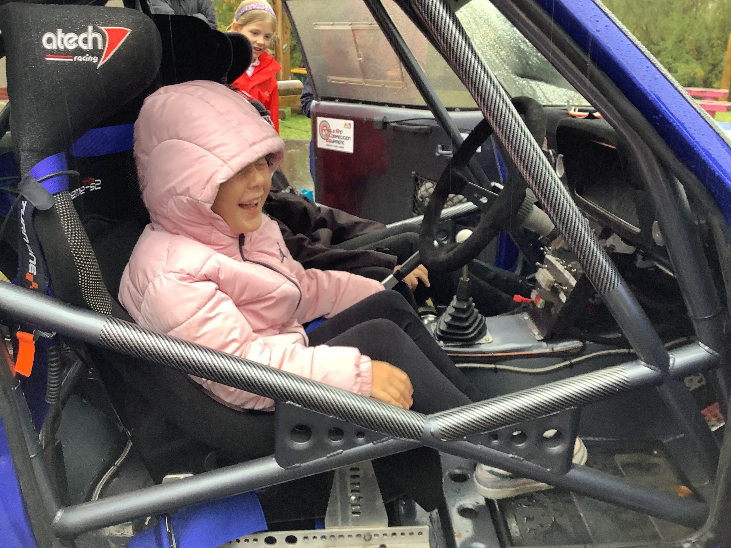 I enjoyed going in the rally car because the seats were low and I liked how there were 3 pedals and a fire extinguisher. – Autumn P4
