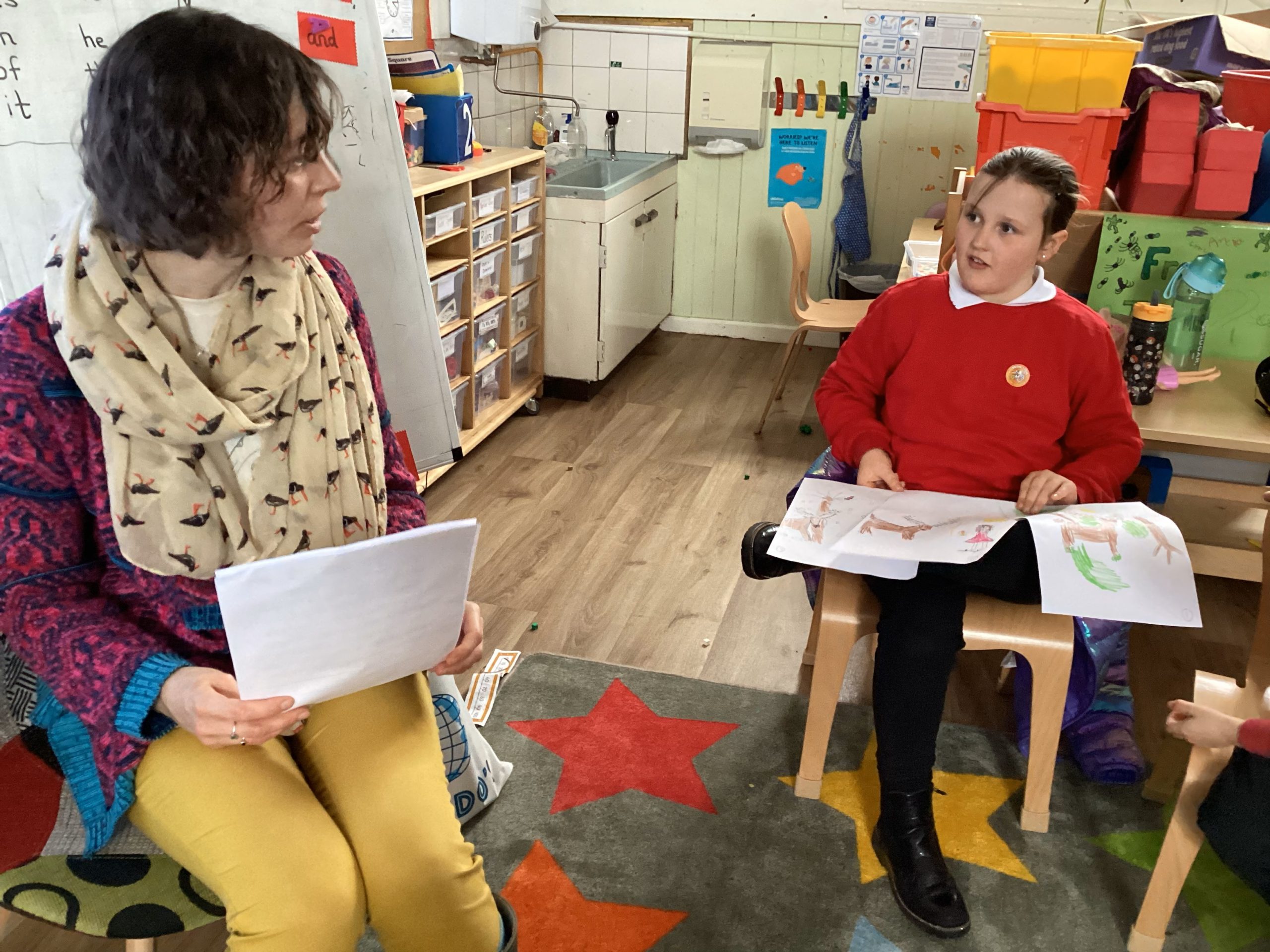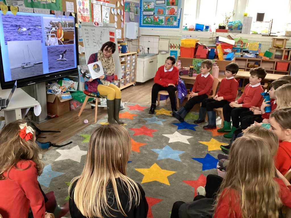 On Tuesday 17th March we had a visit from the local author Zoe Stevenson, and she was lovely and very friendly. She wrote “What Colour are Your Wellies.” She told us a little bit about herself and why she liked writing. She then read her book. The book was about a girl who visited the island and wanted to see what colour wellies birds wore. We learned a lot about local birds on our island. Usma, the girl in the story, liked her own blue wellies best. We asked Zoe lots of questions and she was very good at answering them.